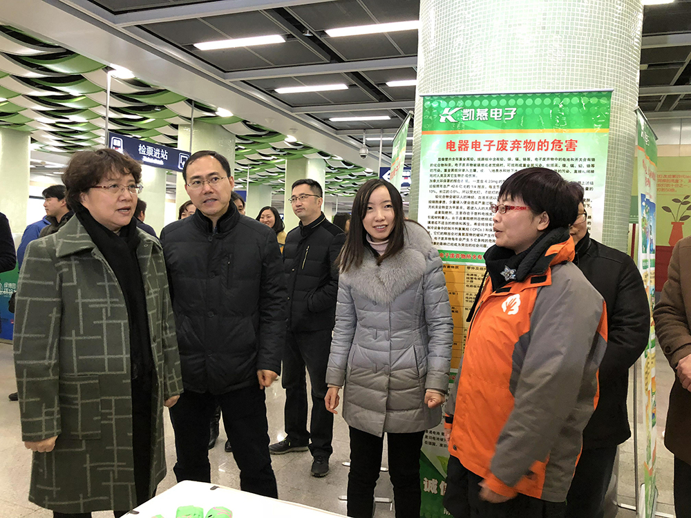 2017年12月17日,一場向公眾宣傳電子廢物回收處理的“環(huán)保進地鐵”活動,在江蘇南京地鐵十號線綠博園環(huán)保車站舉行?;顒蝇F(xiàn)場,主辦方在地鐵站內(nèi)展示了大、中、小學(xué)生及電子廢物回收處置公司制作的電子廢物創(chuàng)意設(shè)計作品、電子廢物規(guī)范化處置流程,并開展了環(huán)保小課堂廢舊光盤重復(fù)利用小手工等活動。