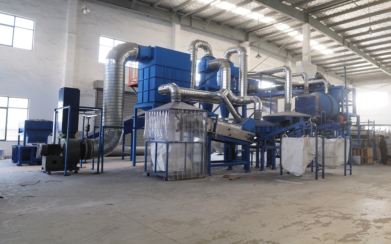該設(shè)備主要由CRT錐干洗滾筒系統(tǒng)、除塵系統(tǒng)、電控系統(tǒng)、監(jiān)視系統(tǒng)等組成。單體設(shè)備包括:暫存料斗、進(jìn)料倉門、干洗滾筒、震動(dòng)分布機(jī)、螺運(yùn)機(jī)、卸料器、平面輸送機(jī)、旋風(fēng)集塵器、濾芯集塵器、風(fēng)機(jī)等組成。處理能力達(dá)到2t/H,設(shè)備裝機(jī)功率為50KW,處理后的碎玻璃規(guī)格小于100mm*100mm,環(huán)保排放達(dá)到國家標(biāo)準(zhǔn)。
