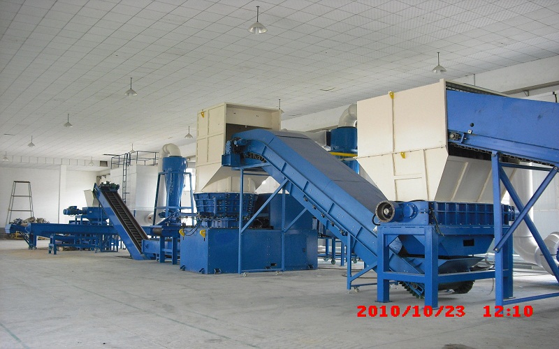 該生產(chǎn)線是目前為止最先進(jìn)的RF-III-B全自動(dòng)冰箱處理線之一,該設(shè)備對(duì)廢舊冰箱、冰柜等家電產(chǎn)品進(jìn)行手動(dòng)拆解,得到塑料、電線、玻璃、線路板等;之后再對(duì)廢舊冰箱、冰柜等家電產(chǎn)品壓縮機(jī)內(nèi)制冷劑進(jìn)行回收,制冷劑回收后拆除壓縮機(jī)、冷凝器等;然后將上述工作完成后得到的廢舊冰箱、冰柜等家電產(chǎn)品的箱體進(jìn)行多級(jí)破碎,破碎后的物料首先進(jìn)行風(fēng)選,分離出聚氨酯泡沫;再通過(guò)磁選,分離出金屬鐵;最后進(jìn)行渦電流分選,分離出銅、鋁及塑料。