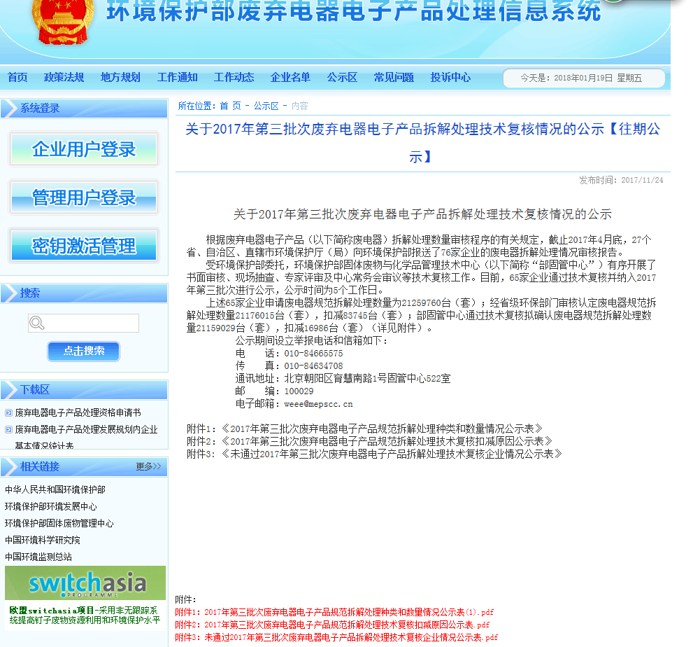 2017年第三批廢棄電器電子產(chǎn)品拆解處理復核情況
