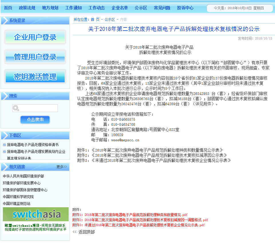 2018年第二批次廢棄電器電子產(chǎn)品拆解情況的公示